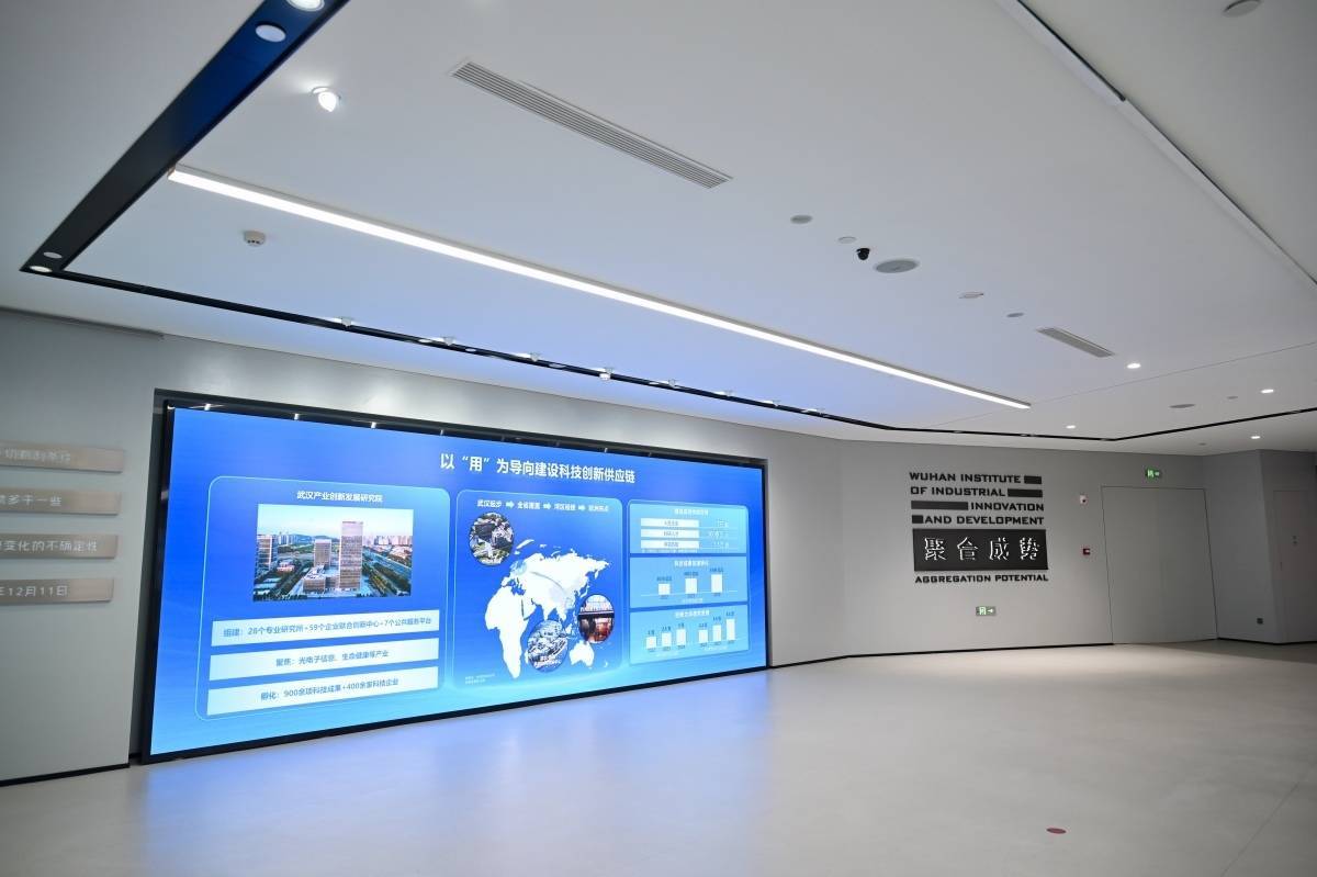 在武创院展厅之外,一块一墙之高的展板格外醒目,介绍的是武汉颠覆性技术创新中心。这是武创院与京津冀国家技术创新中心共同打造的国家颠覆性技术创新网络中部节点。